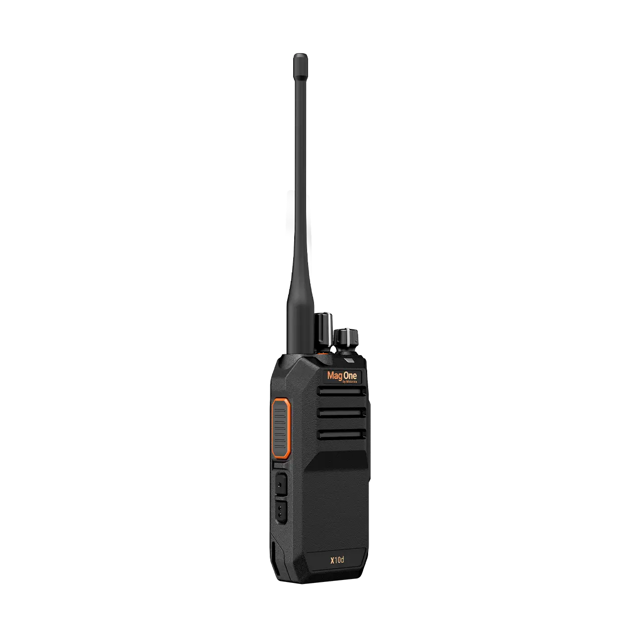 As a versatile and high-performance digital walkie-talkie, the Mag One X10d can demonstrate outstanding communication capabilities in a variety of scenarios. Whether it’s in the coordination of busy traffic and logistics, the operation of production lines in manufacturing plants, the management of hotels and supermarkets, or the supervision of property security, X10d can provide your team with stable and reliable communication services without static interference. The X10d digital radio is feature-rich and offers up to With 23 hours of talk time, you’ll be able to meet your communication needs for your entire work shift and beyond. In addition, in case of emergencies, this walkie-talkie is also equipped with a USB-C port, which you can quickly charge with a standard USB charger, ensuring continuity and reliability of communication.